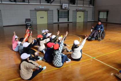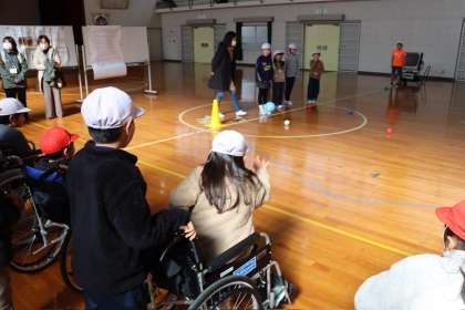 総合的な学習の時間に、5回目の福祉実践教室を行いました。今回の活動では、講師の方をお招きして、ボッチャについてお話していただき、実際に車椅子に乗ってボッチャ体験をしました。講師の方のお話や体験から「誰でも楽しむためにルールを工夫することが大切だと分かった」「ジャックボールに近づけるのが意外と難しかった」「チームで協力することが大切なんだ」など、活動が終わる頃には全員がボッチャの魅力に気付き、もっとやりたいという思いをもちました。今回はボッチャというスポーツを通して、どんな人とも楽しむために必要な考え方を学ぶことができました。今後は、「ふくし」を実現するために、学校や地域に学んだことを伝えていきます。