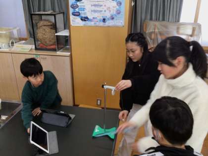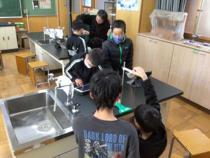 5年生の理科では、ふりこの性質について学んでいます。今日の授業では、ふりこの長さや振り幅を変えるとどのような結果になるのかを実験しました。より正確な実験結果を得られるように、班ごとに協力している姿が見られました。