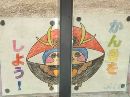 窓を開けると、学校マスコットキャラクターの「ばたっぴぃ」のイラストが完成する工夫をして、大畑っ子が元気に過ごせるように活動をしています。