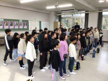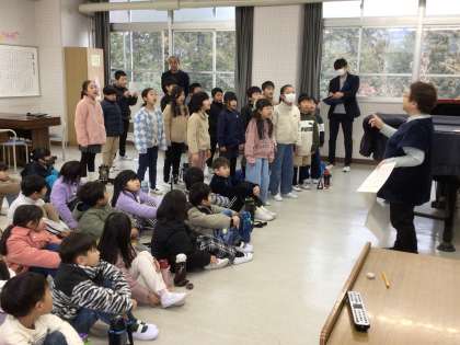 講師の先生をお招きして、2回目の合唱練習を行いました。美しい声を響かせる3年生の声を手本に、練習は進みました。きれいな声で十分伸ばすことや声の出し方などを教えていただきました。学んだことを明日からの練習で思い出して、さらに歌のレベルを上げていきたいですね。
