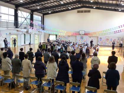 日頃お世話になっている地域の方々をお招きして、「地域の方に感謝を伝える会」を行いました。大畑小学校の校歌を歌ったり、子どもたちが作成した学校マスコットキャラクター「ばたっぴぃ」の紹介絵本のお披露目をしたり、一緒に「ふるさと」を歌ったりしました。また、大畑っ子みんなからの「感謝状」と手作りの缶バッチをお渡ししました。教室に戻ってからの振り返りで、大畑っ子たちは、「地域の方々に少しでも感謝の気持ちが伝わったら嬉しい」「たくさんの方々が来てくださって、ありがたいし、嬉しかった」などと感想を述べていました。