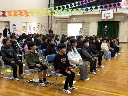 卒業式練習が本格的に始まりました。普段から教室で意識している立ち方、座り方、おじぎの仕方を確認した後、卒業式の流れを教務主任から聞きました。お世話になった6年生に感謝の気持ちを伝えられるように、心を1つにして、「練習は、本番のように」の想いで練習を重ねていきます。