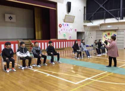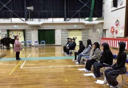 再び外部から講師をお招きして、合唱指導をしていただきました。歌声を聞いて、アドバイスをいただくだけでなく、本番でどんなことを意識して歌うとよいか、ご助言をいただきました。3回にわたってご指導いただいたおかげで、合唱がレベルアップしました。卒業式に向けて、練習を重ねていきたいと思います。
