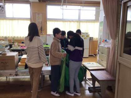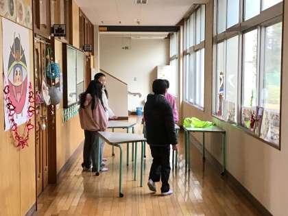 高学年(4、5、6年生)の子たちは、昨日のワックスがけで移動させた掲示板や長机などを元の位置に戻していました。朝の忙しい時間に、学校のことを優先させて行動している上級生の姿勢が、下級生のよい手本になっています。