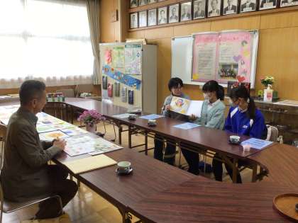 また、「ばたっぴぃ物語」制作チームの卒業生(中学1年生)も「ジブリパークの方に直接お会いして報告がしたい」と来校しました。