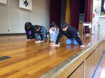 4、5、6年生 高学年集会 公開日 2025/04/15 更新日 2025/04/15 お知らせ 高学年集会を行いました。今年度から高学年に仲間入りした4年生も交えて、高学年とはどういう存在なのか考えました。また、来週から始まる「なかよし班そうじ」のメンバーの確認や役割分担を行いました。掃除の仕方の確認では、6年生が舞台に上がり、挨拶の仕方、箒の使い方、雑巾のかけ方などの手本を見せました。よい伝統を引き継ぎ、大畑っ子を引っ張っていこうという高学年の子どもたちの意欲が表情に表れていました。