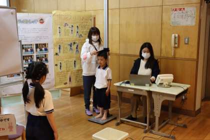 小学校に入って初めての身体計測を行いました。養護教諭からの話をよい姿勢で聞く子どもたちの姿や、計測の前後に「お願いします」「ありがとうございました」と先生の目を見てあいさつする姿などが見られました。今回の計測の記録から、6年後どのぐらい成長をしていくのか楽しみです。