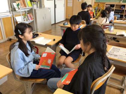 「おにぎり石の伝説」という物語を読んで思ったことを伝え合いました。