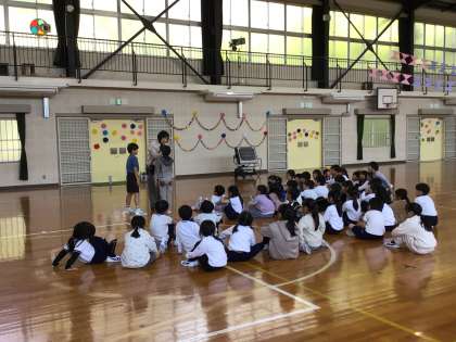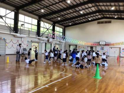 1〜3年生は、委員会活動の裏で、体育館に集合しました。なかよし班(縦割り班)の色を確認した後、みんなで遊びました。笑顔いっぱいで、なかよし班活動がますます楽しみになりました。