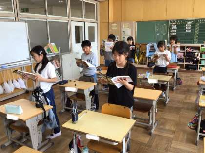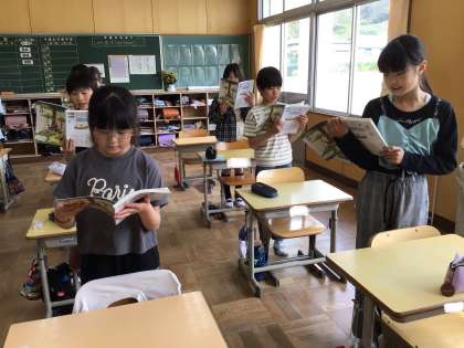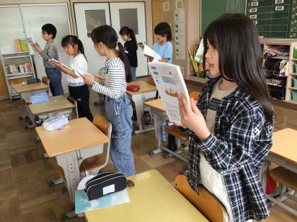 「おにぎり石の伝説」という物語を、音読で表現したい場面を選んで、工夫をしながら音読練習をしました。