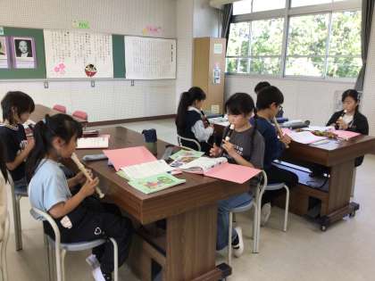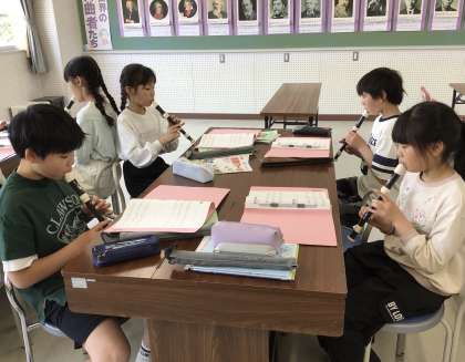 音楽の授業が始まりました。久しぶりのリコーダーでしたが、みんな頑張っていました。歌も楽しく歌っています。これからの成長が楽しみです。