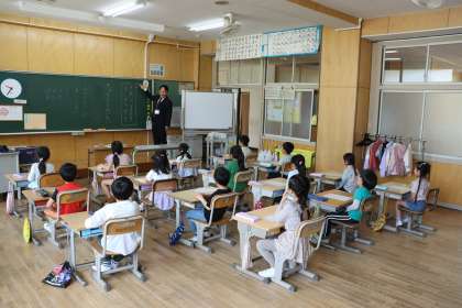 小学校で初めて書写の授業を行いました。書く姿勢を意識して、丁寧に自分の名前を書きました。今回書いた字は、1年生の終わりに書く字と比べる予定です。1年間でどれぐらい字がきれいになるか楽しみです。