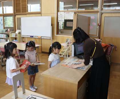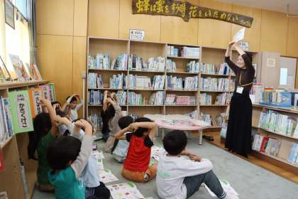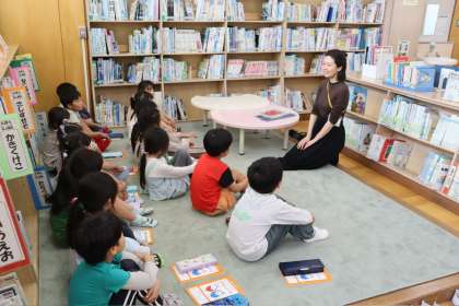 1年生が、大畑小学校の図書室で初めて授業を行いました。