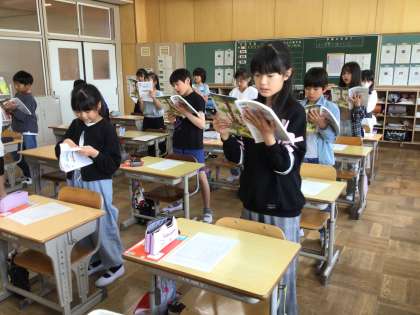 「おにぎり石の伝説」の物語の中で、自分が音読で表現したい場面を選び、音読発表会をしました。