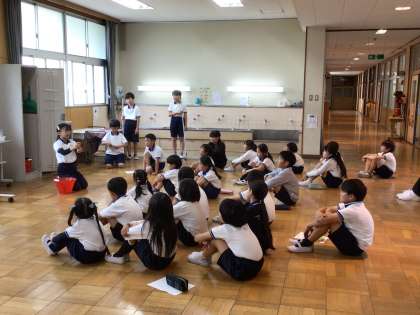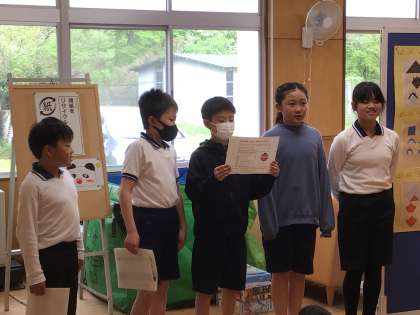 「なかよし班そうじスローガン」をみんなで唱和し、大畑小学校をきれいにしたいという気持ちを高めました。