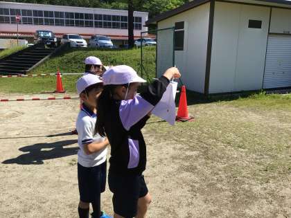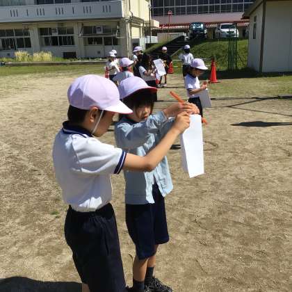 理科「天気と気温」の学習では、天気と気温の関係を調べています。やっと晴れたので、1時間おきに運動場に出て、温度計で気温を測定しました。次回は、これまで測定した気温を折れ線グラフにかいて、関係性を考えます。