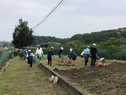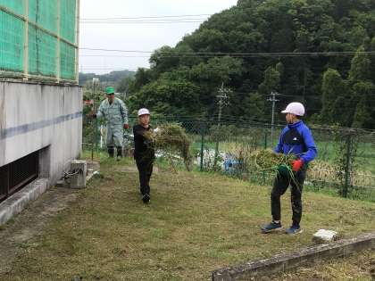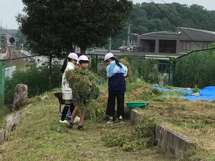 地域の方が朝早くから大畑小学校に来てくださり、大畑っ子農園の整備をしてくださいました。また、大畑っ子の安全・安心な学びのためにと校内整備員も以前から草を刈ったり、集めたりしていました。
