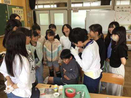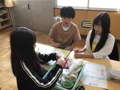 みんなで手当ての方法を考えました。なかなか難しいですね。