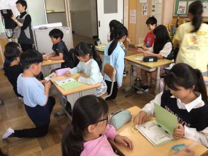 思いのこもったしおりやエコたわしをもらって、みんなとても嬉しそうでした。