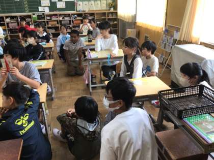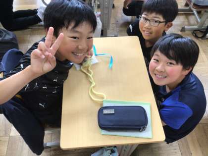 5、6年生 6年生とあおばのみんなから5年生へしおりとエコたわしのプレゼント