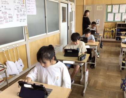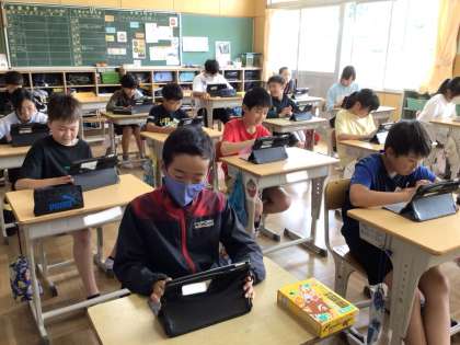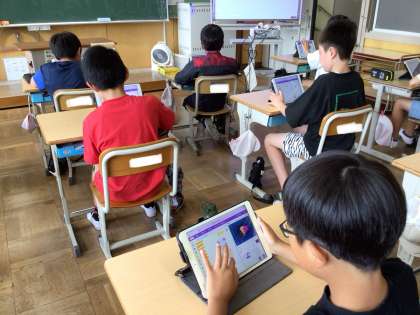 ICT支援員の先生をお招きして、プログラミング学習を行いました。スクラッチというアプリを使って、クイズを作る活動をしました。画像を探したり、文字を打ったりといった作業を難なくこなす6年生は、とても楽しそうにクイズを作っていました。うまくいかないことや分からないことを支援員の先生に教えていただき、とても充実した時間を過ごしました。授業の最後の振り返りでは、「これまでスクラッチはゲームを作るアプリだと思っていたけれど、違うことができると分かった」「クイズを作るということに挑戦して、とても楽しかった」等の感想が出ました。