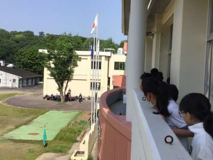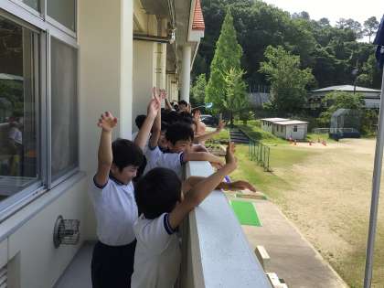 野外学習(キャンプ)に出かける5年生の見送りをしました。6年生は、昨年度自分たちが行なった出発式のことを思い出し、温かいまなざしで5年生を見つめていました。安全に気を付けて、楽しく、学びの多い2日間になりますように。「いってらっしゃ〜い」