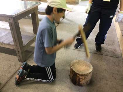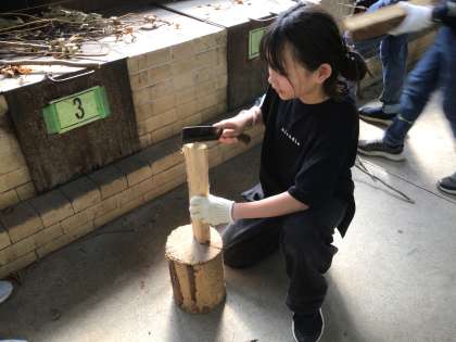 怪我に気を付けながら、薪割り初体験です。