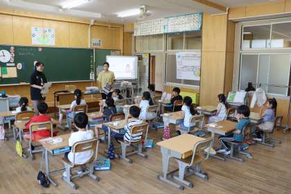 本校の養護教諭が野外学習の引率に出かけている2日間、大畑小学校の安全を守るために、他校から応援に養護教諭が来てくださっています。順番にクラスを周り、自己紹介をしてくださいました。素直で元気いっぱいの大畑っ子のよさをたくさん見ていただけるとよいですね。