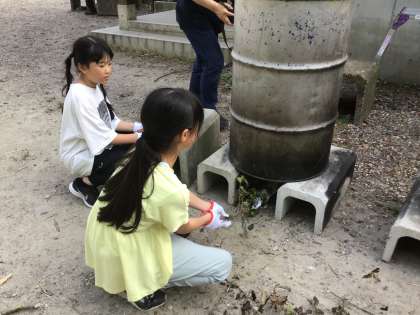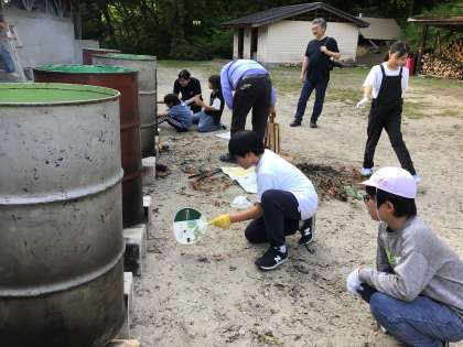 火おこしと同時進行で、ドラム缶風呂も温めています。