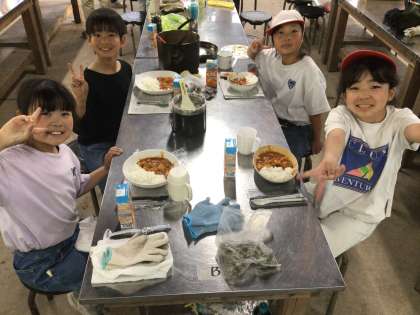 カレーが完成しました。班ごとに味が違いますが、どれも美味しいです。