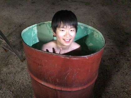 ドラム缶風呂に入りました。 いい湯だな。 心も体もぽかぽかになりました。