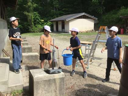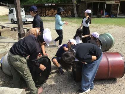 自分たちで作って使ったドラム缶のお風呂は、自分たちで洗ってきれいにします。