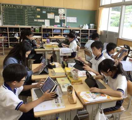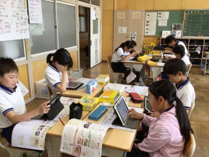 「朝食から健康な一日の生活を」の単元で、朝食の大切さについて改めて学んでいます。前回の授業の振り返りから、「バランスよく食べること」「栄養が偏らないようにすること」などの意見が出て、実際に「いろどり炒め」を作るための計画を立てました。さらに、発展学習として、愛知県の食材にはどんなものがあるのかを学習用タブレットを用いて調べました。