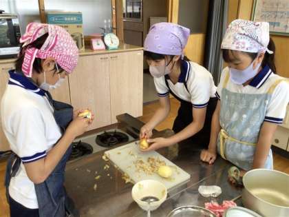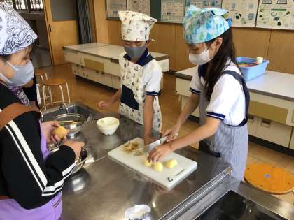 ゆでいもを作って食べました。調理の手順や役割分担をしっかりと確認して調理することができました。