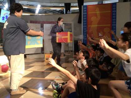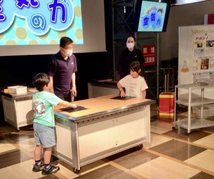 エコットの後は、とよた科学体験館へ行きました。お家の方の愛が詰まったお弁当を食べ、プラネタリウムで月や星座について学びました。その後は、サイエンスショーで空気の力について体験しました。空気には重さがあることを知って、驚いた子ども達でした。