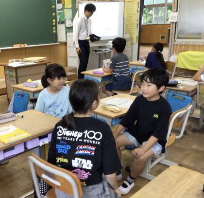 総合的な学習の時間で、環境について調べている子ども達。今日は、地球温暖化について豊田市役所の方から学び、豊田市がどのような取組をしているのかを教えていただきました。まずは身近にできることをグループで話し合い、二酸化炭素削減に向けた取組「脱-1グランプリ2025」に、「チームばた4」としてチャレンジすることにしました。