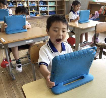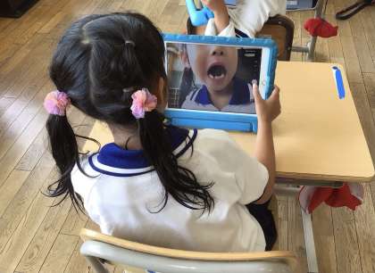 その後、6歳臼歯は生えているか、学習用タブレットを使って確認をしました。