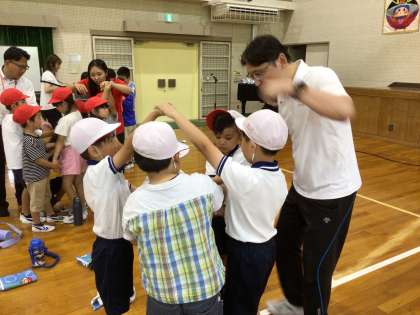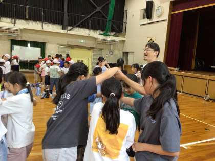 中野 貴博教授から、「人間知恵の輪」「おにごっこ」など、みんなで楽しむことができる遊びを教えていただきました。