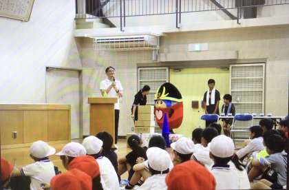 学校マスコットキャラクター「ばたっぴぃ」は、大畑っ子とおうちの方、地域の方の健康を願っています。