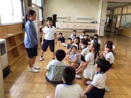 今年度2回目のなかよし班(縦割り班)あそびを行いました。赤チームは、「ジェスチャーゲーム」をしました。希望者が6年生の用意した手作りカードを引いて、ジェスチャーを披露しました。チームで相談しながら答えを考えました。チーム一丸となって白熱した展開となり、終始子どもたちに笑顔のあふれる素敵な時間となりました。