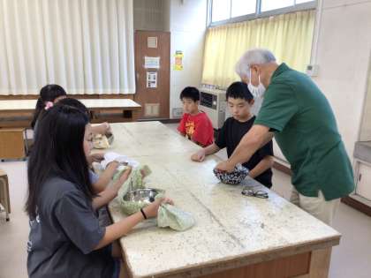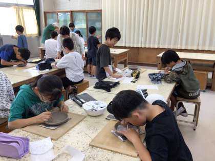地域の陶芸家の先生を講師にお招きして、陶芸教室を行いました。大畑小学校マスコットキャラクター「ばたっぴぃ」のお皿作りその1です。
