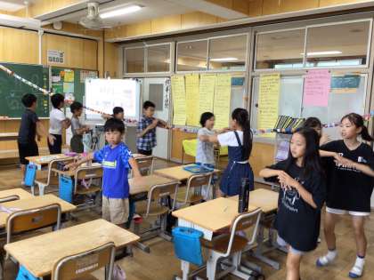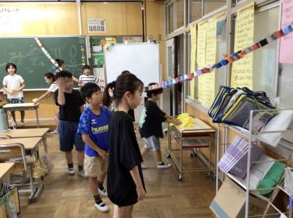 盆踊り、キックベース、間違い探し、宝探し、人狼ゲーム、投げ輪と6つのチームに分かれて、協力して準備をすすめてきました。今日もみんなで楽しい会にしようと、力を合わせる場面がたくさん見られました。次回も楽しみですね。