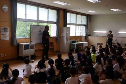 大畑っ子が安全安心の夏休みを過ごせるようにと願いをこめて、校長からは「けじめ」の話、「力」の話、「大畑っ子ドレミの歌」の話がありました。
