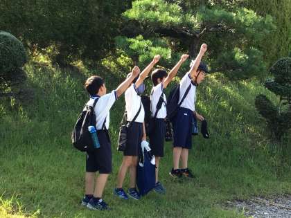 晴天に恵まれ、大会当日を迎えました。出発式では、交通指導員•地域の方々や保護者の皆様、教職員に見守られながら、選手一人一人が意気込みを述べました。これまで練習してきたことを生かし、自己ベストが出せることを願っています。