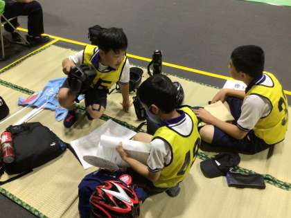 「交通安全子ども自転車愛知県大会」では、これまでの練習の成果を発揮しようと、一生懸命に実技試験のコースの下見、筆記試験の最終確認をしました。大会に向けて準備万端です!最後まで大畑っ子代表として頑張ってほしいと思います。