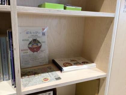 豊田市博物館「みんなの研究室」付近に、図書コーナーがあります。そこに、「ばたっぴぃ」コーナーが開設されました。大畑小学校の卒業生が完成させた「ばたっぴぃ物語」をどなたでも手に取っていただけるようになっています。大畑小学校マスコットキャラクター「ばたっぴぃ」には、大畑小学校地区のよさがモチーフとして盛り込まれているため、郷土資料として特別に展示されています。ありがたいことです。