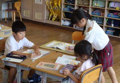 小学校生活初めての夏休みが終わり、1年生の子どもたちも元気よく登校してきました。久しぶりに学級の友だちと会えた喜びや夏休みの思い出を伝え合う姿などが見られました。夏休みが終わり前期も残すところ1か月となりました。これからも、日々の学習や生活を大切にしていきながら過ごしていきます。