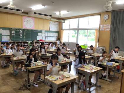 今日の給食ではその他にも、大豆、じゃがいも、ツナなど長期保存ができる食べ物が使われています。