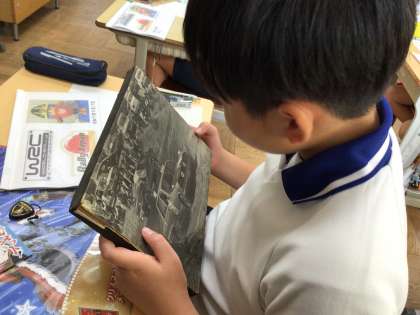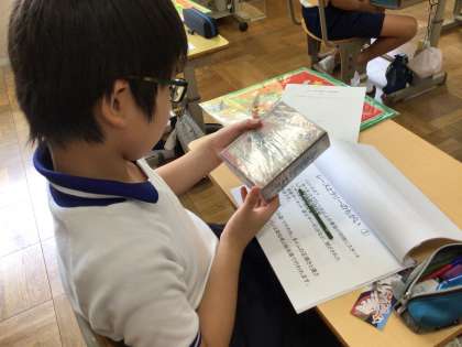 車の模型や写真、作成した資料を持ってきてくださいました。たくさんの資料を子どもたちは興味津々で見つめていました。。