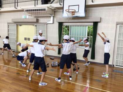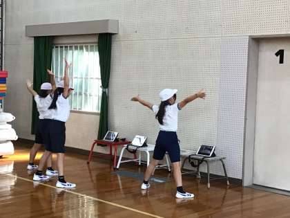 大畑フェスティバルで行う高学年の表現の演目が決まり、練習が始まりました。学習用タブレットを活用して、各自で動きの確認をしました。